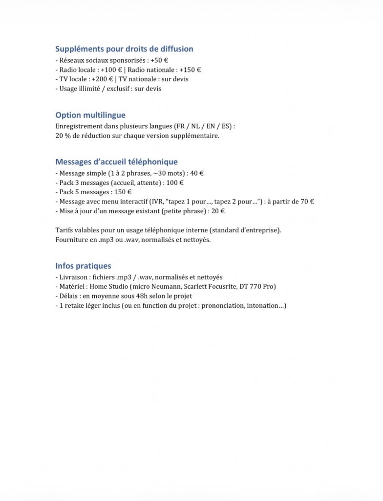 Vous pourrez compter sur un enregistrement impeccable de la voix néerlandaise flamande (belge), la voix française, la voix anglaise ou la voix espagnole grâce à l’équipement professionnel dont je dispose.
